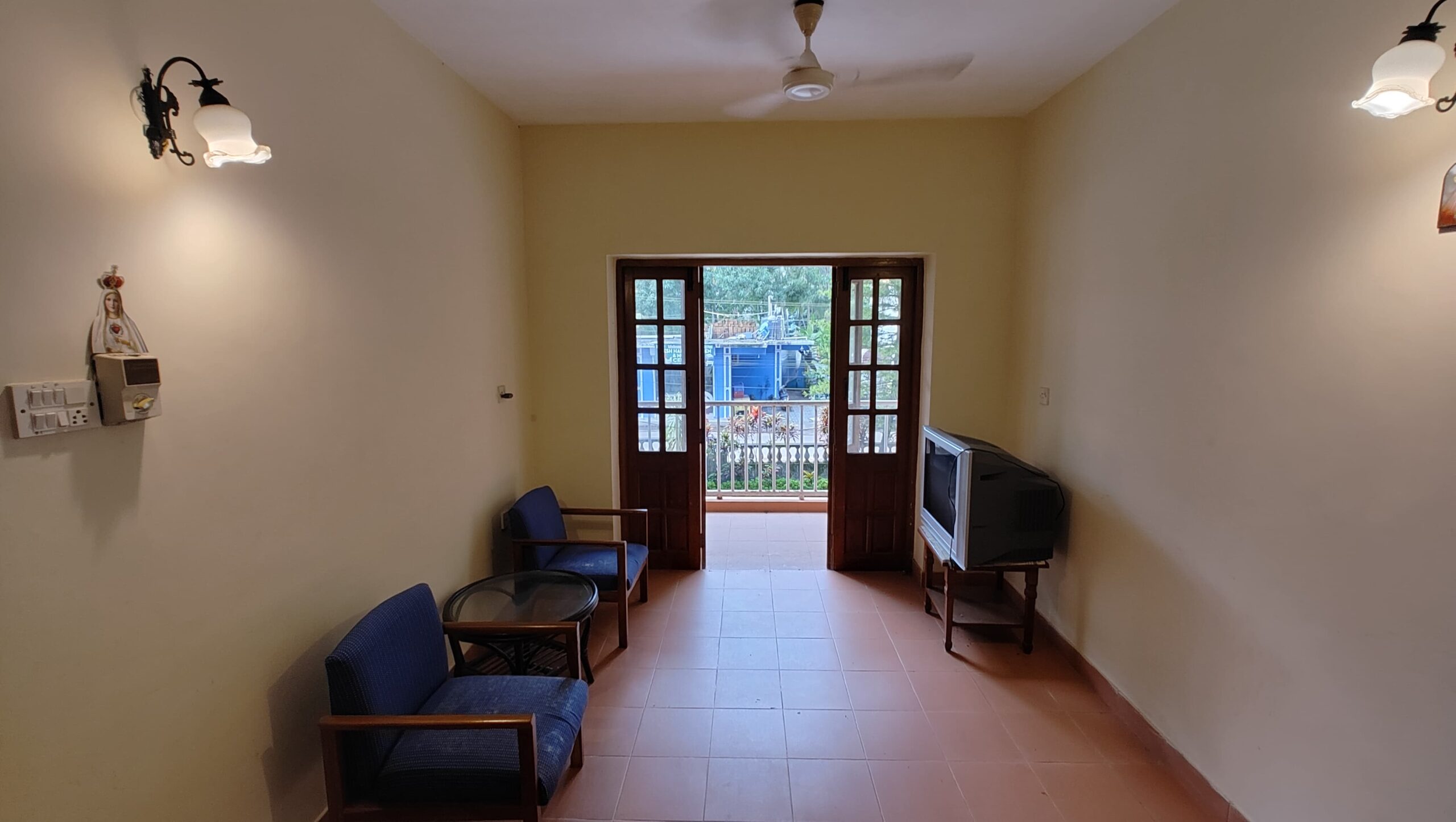 Details: Fully furnished with a Fridge, AC, and new Sleepwell mattresses. 1st floor, 1-bedroom, Common Toilet bathroom, Hall, 1 balcony with swimming pool facing, Kitchen, 2.2km from Calangute beach, 8.6km from Mapusa, and 28km from Mopa International Airport.